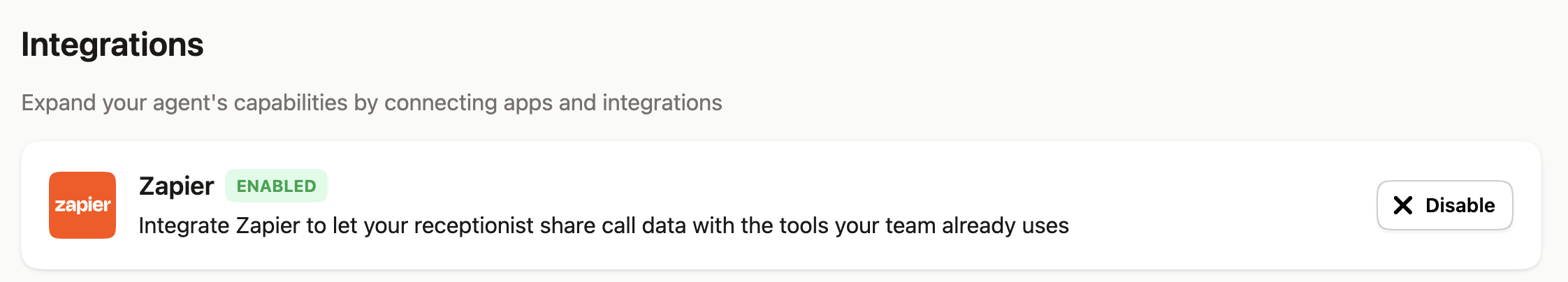 Una vez que su flujo de llamadas esté configurado, debe crear la automatización que dirija las llamadas de emergencia al técnico correcto. Para eso, utilizarás Zapier. Dirígete a Integraciones en Upfirst y conecta tu cuenta de Zapier.